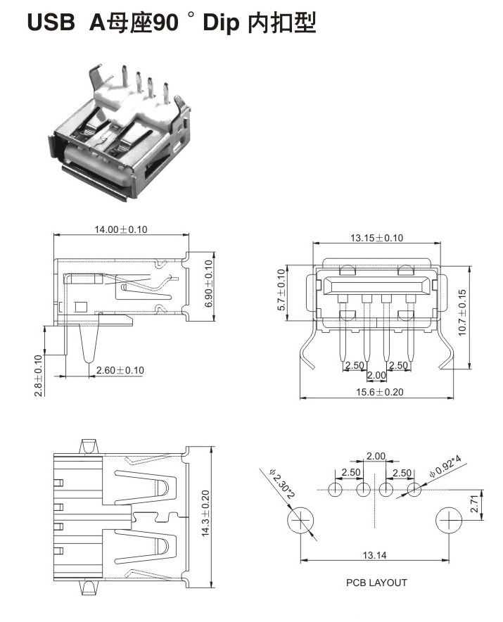 USB A母座90° Dip 內扣型