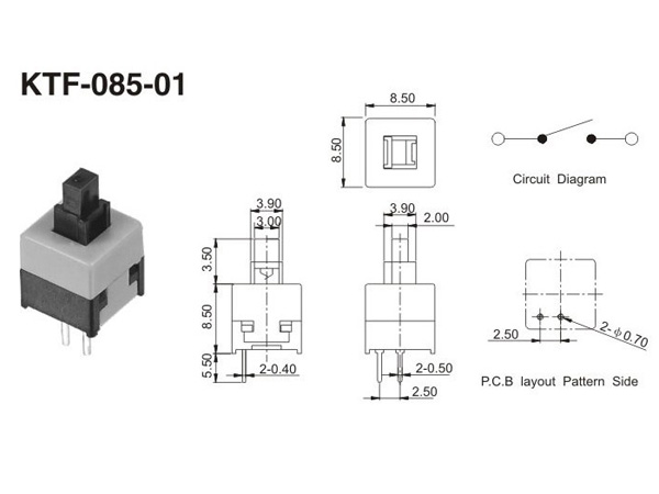 自鎖開關/無鎖開關KTF-085-01.產品廣泛用于收音機、玩具、電話、電視機、MP3、等電腦通訊器材、及家用電器等設備。