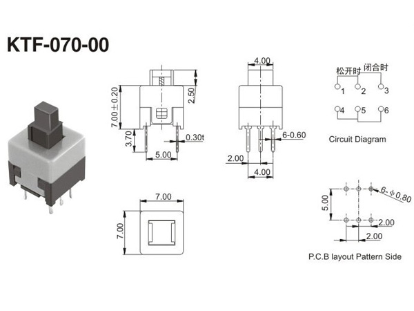 小撥動開關KTF-070-00.產品廣泛用于收音機、玩具、電話、電視機、MP3、等電腦通訊器材、及家用電器等設備。